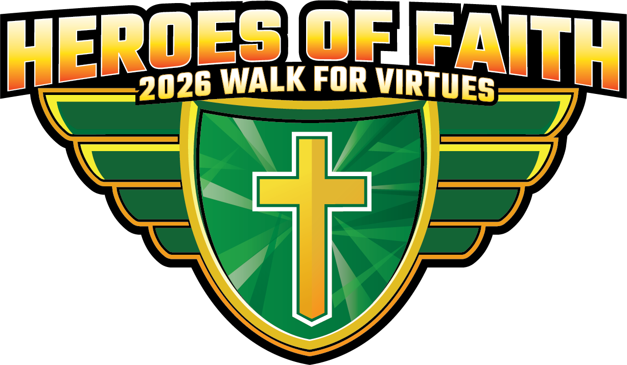 To prepare for this event, we discuss a VIRTUE each month. The VIRTUES we walk for are Friendship, Stewardship, Gratitude, Patience, Reverence, Justice, Forgiveness, Hope, and Respect. We display those VIRTUES along the route to visually reinforce our commitment to our faith-based education!